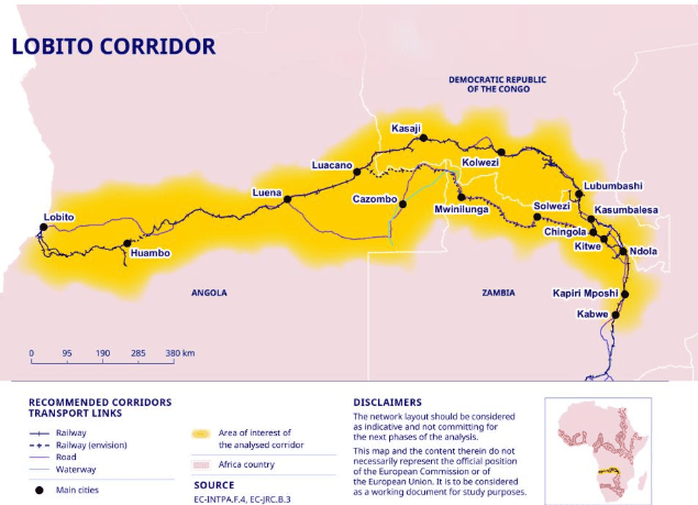 O Corredor do Lobito interliga as regiões sul da República Democrática do Congo (RDC) e do noroeste da Zâmbia aos mercados comerciais regionais e mundiais via porto do Lobito em Angola
