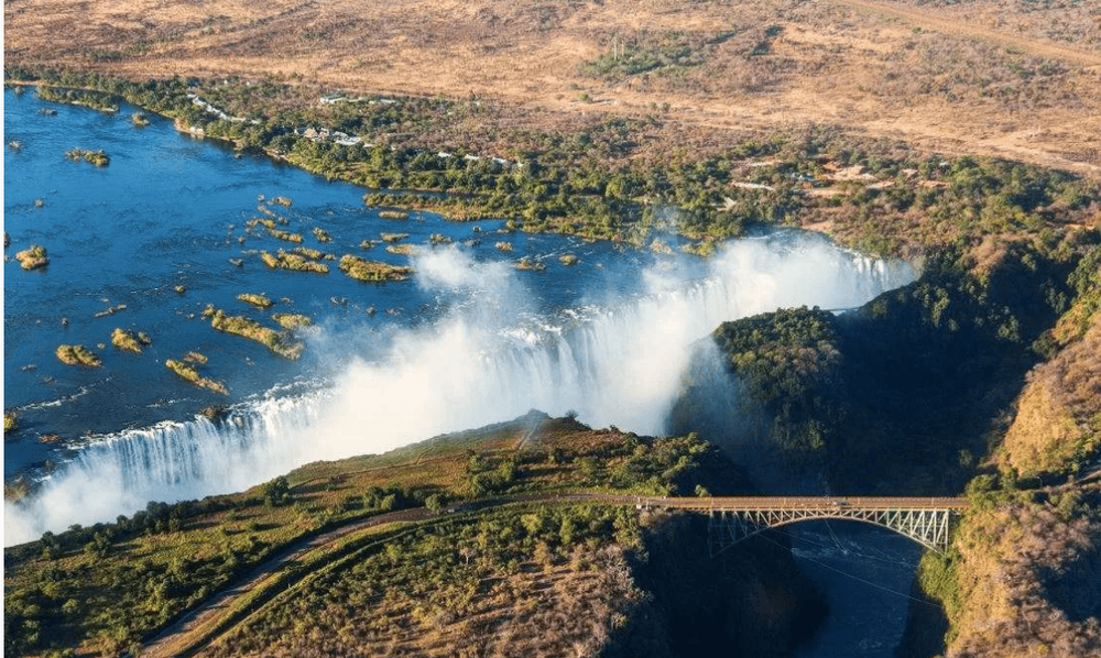 Listada entre as sete maravilhas naturais do mundo, Victoria Falls ganhou o nome ocidental em 1855 quando foi descoberta pelo missionário e explorador britânico David Livingstone (1813-1873), que a batizou em homenagem à Rainha Victoria. Para as tribos locais, sempre foi Mosi-oa-Tunya – A fumaça que troveja –, descrição perfeita do que acontece quando as águas do rio Zambeze mergulham no abismo de 1.700 metros de largura e mais de 120 metros de profundidade. O estrondo das águas pode ser ouvido a 40km de distância, e a névoa, vista 50km além.